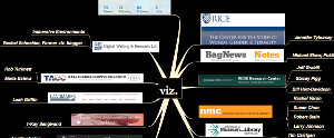 This mindmap reflects a number of of viz.'s connections in 2010-2011 including those with other blogs, photographers, museums, and initiatives, centers and programs both in the DWRL and at UT, Michigan State, and Rice University. Here's a partial list of collaborators: The Blanton Museum, BagNewsNotes, the Department of History, TACC, and The Adipositivity Project.
